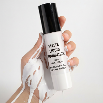 严格保持瓶子和手部动作不变,浓稠的白色油漆很多个分支在手掌中向下流淌着,些许从指缝滴落,呈现粘稠质感,瓶子不要有白色油漆