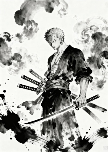 墨水画风格,生成海贼王中人物“索隆”