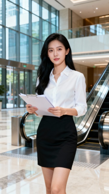 商务感与时尚感交融,3D角色风呈现优雅女性形象,金属质感细节凸显光滑质感,实景商场背景增强真实氛围,软3D风格赋予画面高级视觉体验。