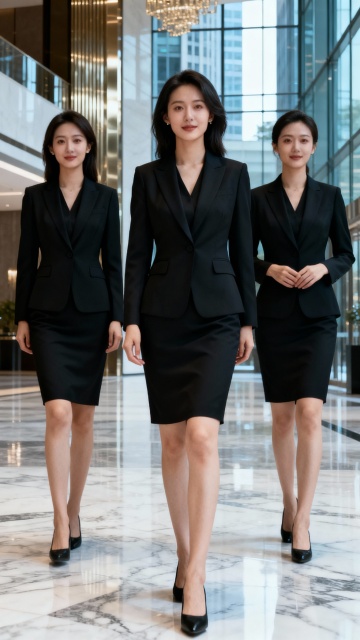 商务感与时尚感交织,潮流剪裁展现面料风韵,实景商场背景强化现代都市气质。
