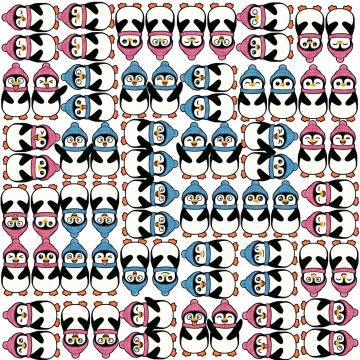 将绵羊变成企鹅,企鹅戴着蓝色的毛线帽子和围巾