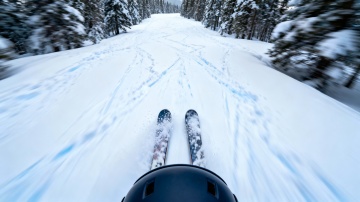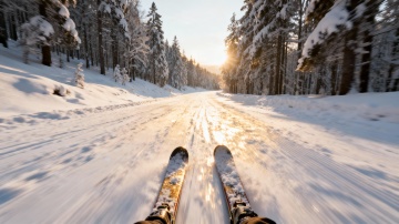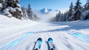 3D风滑雪场实景,重拟物设计融合虚拟现实感,光影与清新色调交织,营造出温暖舒适、潮流时尚的冬季度假氛围。