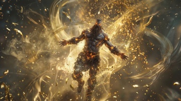 鎏金巨龙腾云而起,3D重拟物风格尽显金属质感与体积感,光影交错中透出神圣与奢华,虚拟自然背景烘托东方神韵。