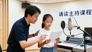 动漫风插画,软3D质感结合手账元素,展现声优练习场景,清新舒适中传递励志成长理念,科技感声波与脑图设计强化专注氛围。