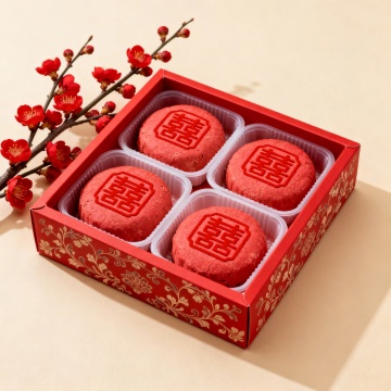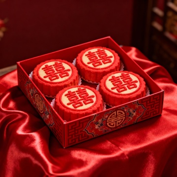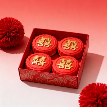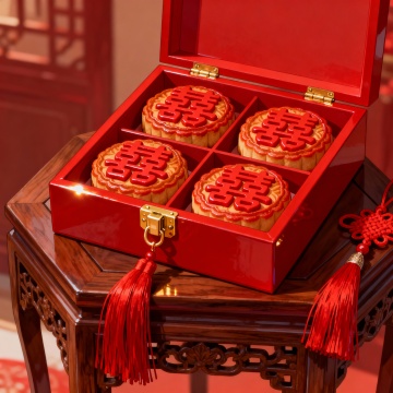 把图中福袋底座一个变成两个,背景是茶桌背景,尺寸保持不变
