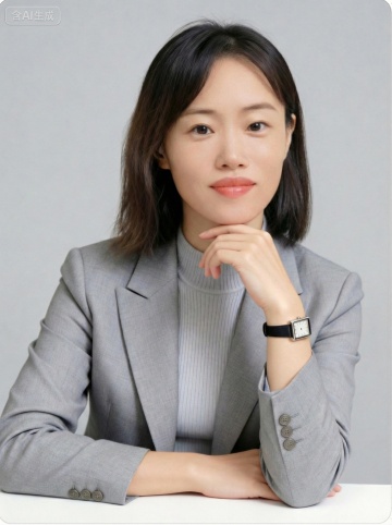 参考第一张图保留人物脸型、年龄等特征生成职场形象照,参考第二张图人物占位和比例,标准焦段50mm,F/4光圈(F/2.8-F/4区间),平视视角(镜头与人物视线齐平);人物占画面70%,人物居中(居中构图),位于画面中心,为视觉聚焦点,入境范围头部及以下至臀部下方10cm(半身像);左右留少量背景空间;头部与画面顶部保留5%空间;头部发型完整;肤质白皙细腻,头肩比例协调,美颜磨皮韩式精致自然的浓妆