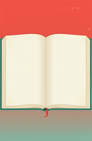 一本打开的书籍,书页呈现出鲜艳的红色,书页边缘有蓝色的轮廓线,有几片红色的书页从书中飞出,悬浮在空中,白色背景,整体呈现出简洁的插画风格,色彩鲜明,线条流畅,具有童话般的梦幻感。