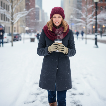 保持手套细节不变,分清正反面,一个外国美女穿着这双手套在通勤路上