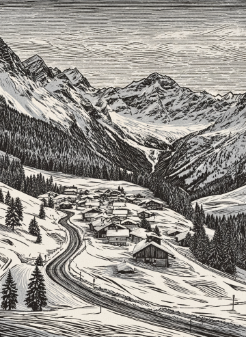 雪山在晨曦中染上金红,光影交织如油画般静谧唯美,村落灯火点缀其间,胶片质感尽显清新文艺,宽阔视野带来心灵宁静。