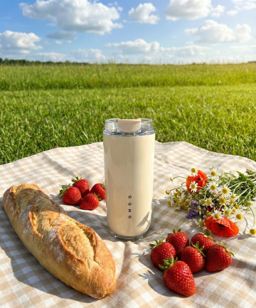 清新自然的户外场景中,四款简约金属质感保温杯以性冷淡风与轻拟物设计呈现,柔和色调搭配实景光影,传递舒适与高级感。