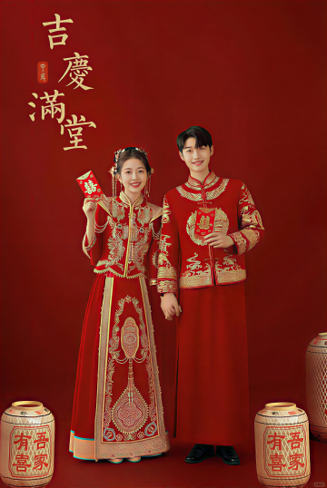 喜庆中式婚礼,新人浪漫相依,国潮风与杂志风完美融合,尽显优雅与甜蜜。