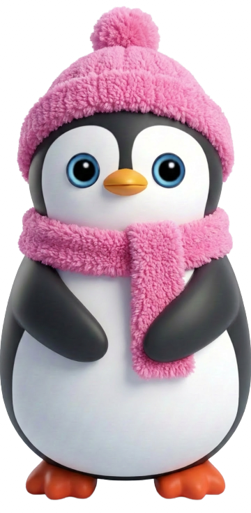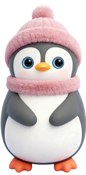 毛线编织的软3D企鹅,戴黄围巾捧雪球,拟物质感与可爱卡通结合,营造温馨趣味冬日氛围。