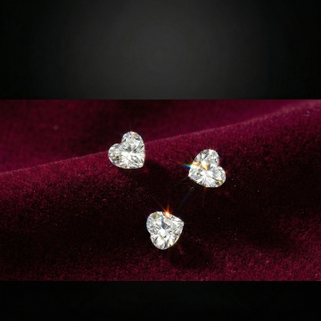 一枚铂金材质的戒指,主钻采用心形切割,周围环绕着精致的水滴形副钻,戒托两侧镶嵌着细密的圆形小钻,整体设计简约而优雅,主钻在白色背景下闪耀着璀璨的光芒,具有高度的金属质感和钻石的透明光泽,光影效果清晰,呈现出真实的珠宝摄影风格。