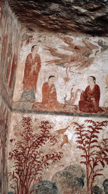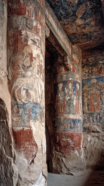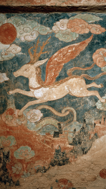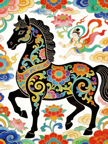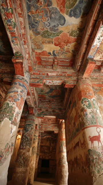根据根据传统非遗景泰蓝为主题,结合中国水墨画画风和东煌壁画加上砂石纹理做出的作品