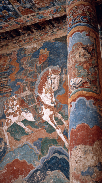 古典中式工笔风,3D角色超现实主义展现,毛发生长风飘逸,佛像背景神秘祥和。