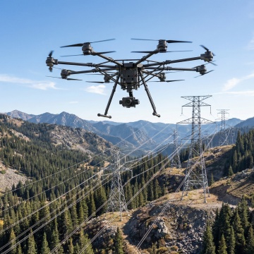 简约现代风格的无人机产品展示图,单架无人机居中规整排布,纯色背景,无任何文字、logo和水印。无人机采用金属灰为主色调,机身线条流畅,细节精致,配备四个螺旋桨和前置摄像头,底部有绿色指示灯。整体画面干净利落,光影柔和,突出无人机的科技感和现代设计美学。