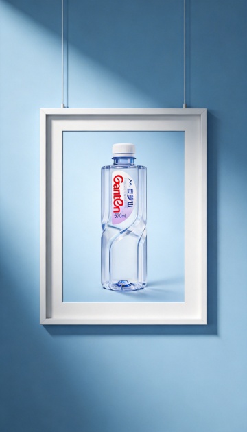 清爽感与清透感交织,3D风玻璃质感瓶身呈现现代简约美学,重拟物设计强化视觉真实感,整体风格纯净利落,传递夏日清凉意象。