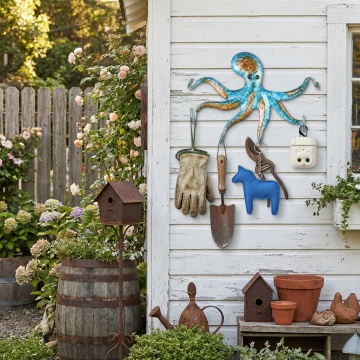 图中的木制牌子挂在花园的木制围栏上,正视