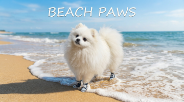 以图中的狗狗鞋为元素,设计6张跟狗狗鞋有关的图,比例 「16:9」,物体主体特征不变