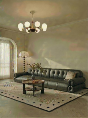 吊灯往左边移动到沙发中间位置