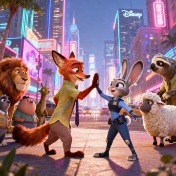 一群可爱的卡通动物围坐在家庭影院前,兴奋地看着大银幕上播放的动画电影,房间布置温馨充满童趣,墙上贴着《狮子王》《冰雪奇缘》等经典动画海报,爆米花和饮料散落在地毯上,窗外是星空夜景,风格是3d卡通风格,比例是16:9