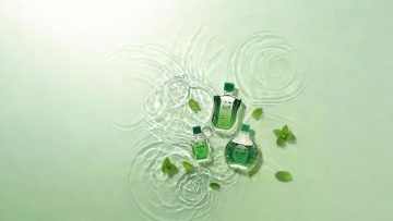 主体坠入淡黄色背景的水中,激起大量水花与气泡,整体呈现出灵动、富有活力的质感,采用写实的产品摄影风格。
