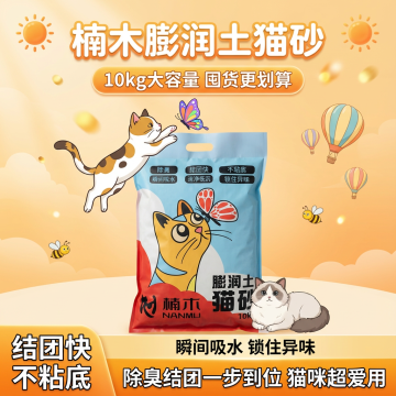 帮我做10张拼多多主图,卖点可写结团快不粘底 猫咪超爱用 10kg大包装 囤货更划算 膨润土猫砂瞬间吸水+锁住异味 楠木膨润土猫砂:结团快/不粘底/洁净低尘10kg大容量猫砂 除臭结团一步到位 图片上有可爱的小猫然后保持产品不变 要求是中文汉字