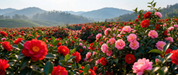 大幅茶园茶山景色,中午太阳高照,少许白云在远处,图像输出长250cm,高约120CM