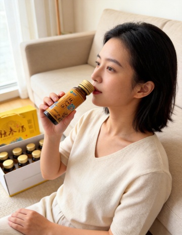 一张年轻女性手持护肤品、渐变紫色背景的美妆广告风格图片