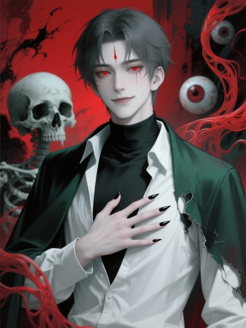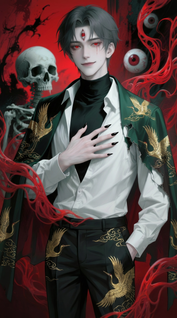 华丽古风水墨人物插画 水墨浅色粗湿笔勾线+回折处干脆利落 水墨湿笔铺色,水彩看涂晕染,弥散渐变,色彩饱满有层次,水迹点染,金色银色点缀 宣纸质感,粗颗粒质感 时间凝固瞬间,动感构图,大写意留白 人物特写,从头顶俯瞰,暗色调,主题枯萎,主色深绿+幽蓝+暗红+黎色+浅云背景,墨色长卷发男子 丝绸+丝绒 深蓝色交领汉服 红色内衣 黑色细躞蹀腰带 绸缎般的浓密长发+高光 繁复褶皱+华丽饰品和纹理 意境