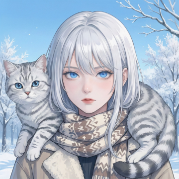 梦幻感与唯美感交织的插画风人物,蓝银相间的古典服饰搭配浮雕纹样边框,玻璃画质感中透出神秘而神圣的静谧气息,宛如冰雪中的优雅仙者。