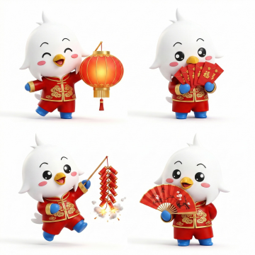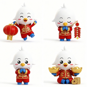 软3D风卡通小马,身着国潮红衣,头戴鎏金帽,手抱福字钱袋,金币飞舞,喜庆可爱,寓意新春好运。