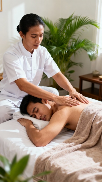 轻拟物风融合油画质感,柔和光影勾勒温馨按摩场景,实景感十足,传递舒适疗愈氛围。