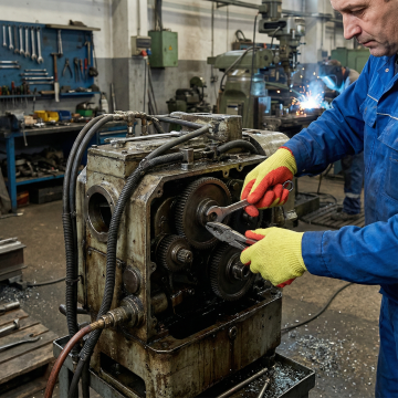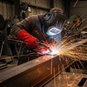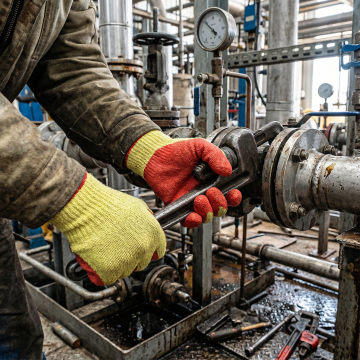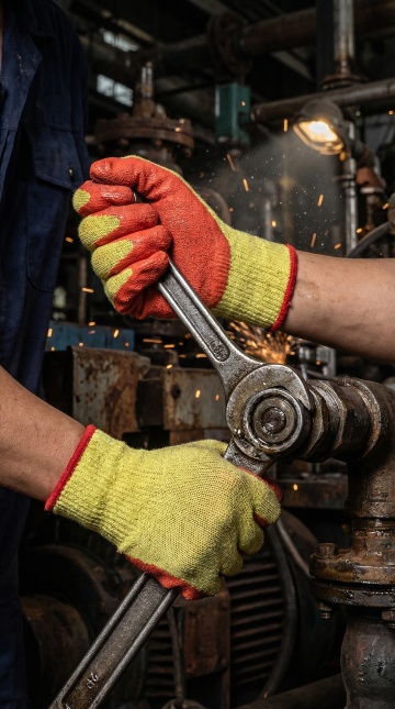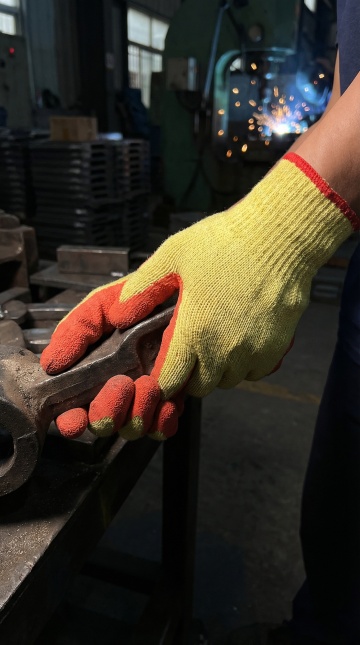 保持手套细节不变,分清正反面,一个外国帅哥穿着这双手套在操作机械