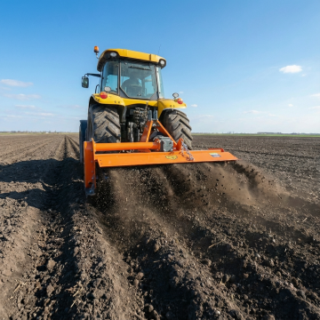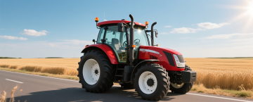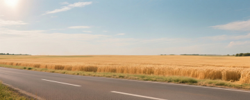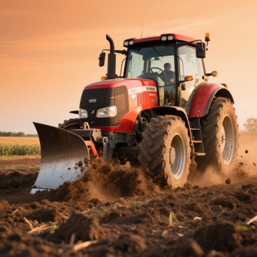 油画风麦田,夕阳洒金,机械剪影,宽阔实景,光影浪漫。