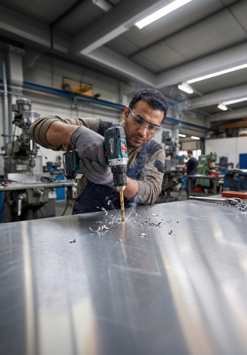 生成2张工人戴着手套在维修设备或管道,保持手套细节不变。