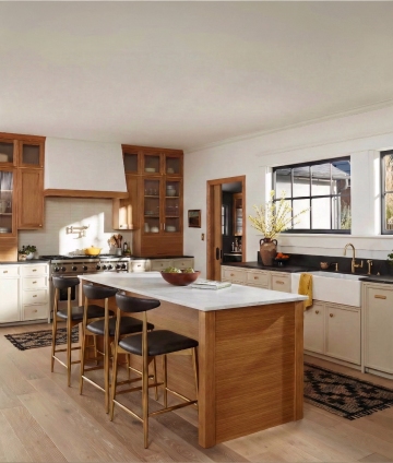 三盏灯搭配 悬挂在温馨明亮的厨房岛台上 无人物