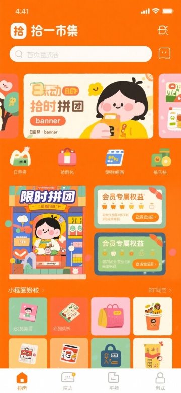 扁平风插画结合拟人化角色,营造可爱卡通感,搭配明亮色块与手账风元素,呈现温馨趣味的促销氛围,孟菲斯风格点缀提升视觉活力。