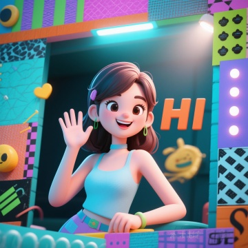 未来感3D角色,蓝白相间的服饰设计,展现科技与时尚的完美融合