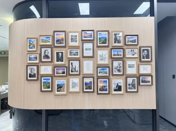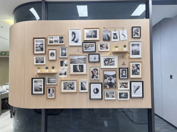 在木质板上生成照片墙,相框尺寸为A6尺寸和A5尺寸,创新设计,排版有序,商业化