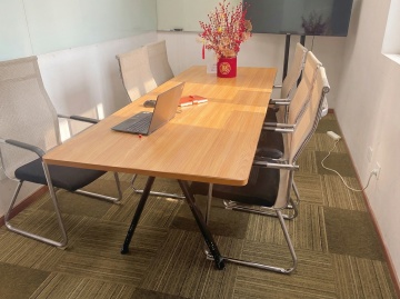 现代简约风格的办公室环境,开放式办公区布局,浅灰色与白色为主的中性色调,大面积落地玻璃窗引入明亮自然光,搭配白色条形吊灯和嵌入式筒灯提供均匀照明,灰色几何图案地毯覆盖地面,白色办公桌配深灰抽屉柜,黑色框架米色坐垫办公椅,办公桌间有半人高白色隔断,角落摆放大型绿植增添生机,金属与玻璃材质的百叶窗隔断,办公桌上配有笔记本电脑和黑色办公电话,整体空间干净整洁、通透开阔,光线充足柔和,营造出专业高效且舒适的工作氛围。