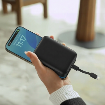 一个简约现代风格的白色充电宝,采用光滑细腻的哑光材质,边缘圆润处理,正面有品牌logo和四个电量指示灯,底部配备两个USB-A接口和一个USB-C接口,轻盈悬浮在流动感十足的白色丝绸背景上,背景采用柔和的浅灰色渐变,整体画面干净通透,光线从左上方柔和照射,在充电宝右侧和丝绸褶皱处形成自然的高光与细腻阴影,营造出优雅、科技感与质感并存的氛围,构图以充电宝为视觉中心,丝绸背景呈波浪状环绕,凸显产品的简洁设计与高端品质。