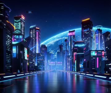 赛博朋克风未来都市,霓虹光影交织,粒子流缠绕高楼,飞行器划破云雾,虚拟现实与科技感碰撞,冲击力十足。