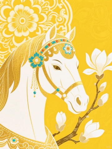 工笔与岩彩交融,鎏金勾勒骏马华纹,融合中式民族元素,喜庆祥瑞,尽显复古雅致。