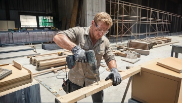 保持手套细节不变,分清正反面,一个外国帅哥穿着这双手套在工地作业