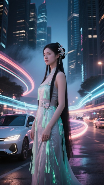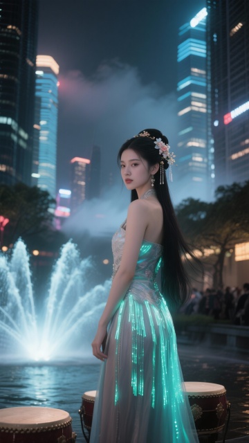 20張分鏡圖提示詞(9:16,32K電影級) 統一設定:25歲仙氣美女,長直黑髮、螢光流蘇長裙、宋代簪花,現代超現實城市夜景(摩天樓+國風霧氣+螢光光暈),無文字,電影寫真風格 0-3秒 Hook 吸睛組 開場霓虹海 9:16, 仙氣美女立於摩天大樓頂層,萬家燈火如星海傾瀉,裙擺飄揚如銀河流動,巨大圓月懸背後,城市全景藍紫螢光,32K電影寫真 副歌第一拍爆發 9:16, 美女高速旋轉起舞,霓虹光軌環繞如銀河,長髮甩出完美弧線,背景超現實城市燈光爆炸,動態模糊+強烈燈光暈染,32K 3-15秒 Verse 畫面推進 鳳釵搖曳特寫 9:16, 超近景古風鳳釵搖晃,鑲嵌寶石折射霓虹七彩,美女閉眼陶醉,背景虛化摩天大樓,螢光粒子緩飄,極致細節特寫 LED心跳特效 9:16, 城市廣告牌逐字亮起「你 的 名 字」,美女掌心對著螢幕微笑,粉紫光暈照亮臉龐,周圍行人變光點,超現實浪漫 15-30秒 Pre-Chorus 堆疊 5-8. 四連鏡頭轉場(每張3秒) 5. 霓虹雨中慢舞,透明雨絲帶螢光 6. 玻璃幕牆倒影雙重影像 7. 高速電梯俯視城市呼吸 8. 屋頂花園星光漫舞 30-45秒 Chorus 高潮 9-12. 舞臺感爆發 9. 摩天輪變身巨型舞臺,她置中起舞 10. 噴泉激光秀配合鼓點爆發 11. 無人駕駛車流變光帶環繞 12. 煙火+城市全景頂點