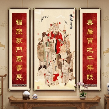 工笔细腻绘中式神韵,鎏金浮雕衬古典华章,刺绣纹样缀喜庆祥瑞,极繁主义构图尽显神圣庄严,迎春纳福,年味盎然。