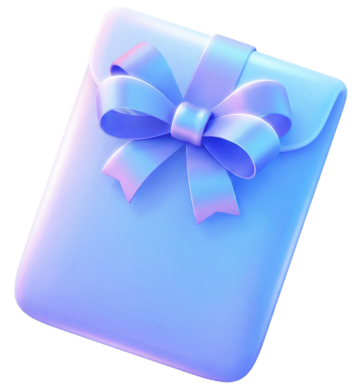 梦幻粉色渐变礼盒,透明玻璃质感搭配柔美蝴蝶结,软3D风格呈现甜美可爱氛围,点缀花朵与彩带,节日感十足。