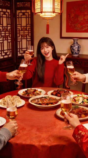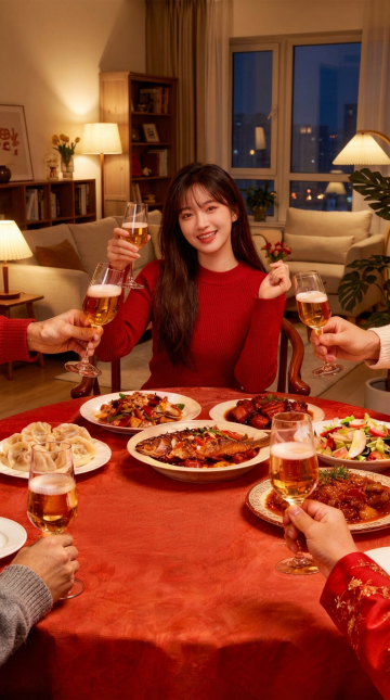 修改人物头发为长发披肩,衣服换成现代红色优雅毛衣,优化人物皮肤(避免AI感,假面感,不要过度磨皮)「图片1」