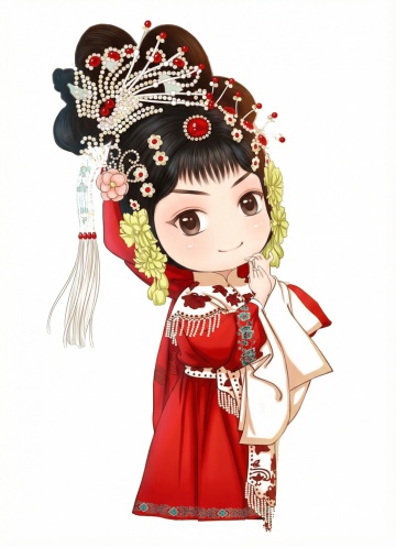 插画,苗族卡通小女孩,6个,浅蓝色背景